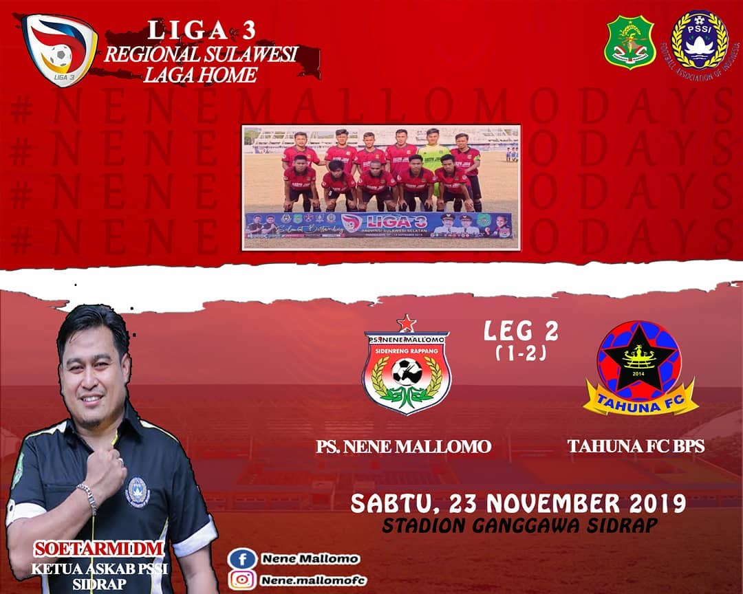 TOPNEWS1.ONLINE, SIDRAP —Tim kebanggaan masyarakat Sidrap, PS Nene Mallomo akan menjamu Tahuna FC dari Sulawesi Utara pada lanjutan Kompetisi Liga 3 Regional Zona Sulawesi, Sabtu 23 November 2019 Pukul 15.00 sore, di Stadion Ganggawa Pangkajene Sidrap.